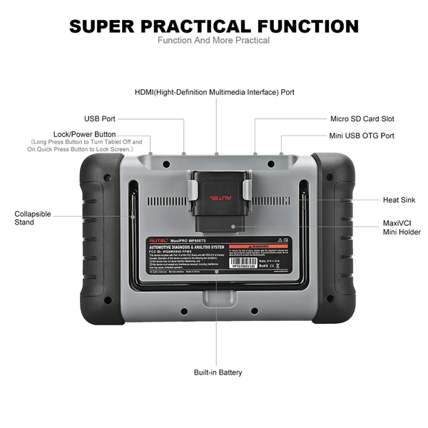When it comes to ultra-portability, MaxiPRO MP808TS is your perfect companion. Featuring a fast quad-core processor, MP808TS offers maximum convenience and swift diagnosis. The intuitive user interface makes using the device effortless through a 7-inch LCD touch screen that displays at 1024 x 600 quality. Together with the ability to quickly read and clear Original Equipment Manufacturers (OEM) enhanced codes for TPMS module of the majority of the makes and models on the market, MP808TS provides you with superior special functions for TPMS services with ease.