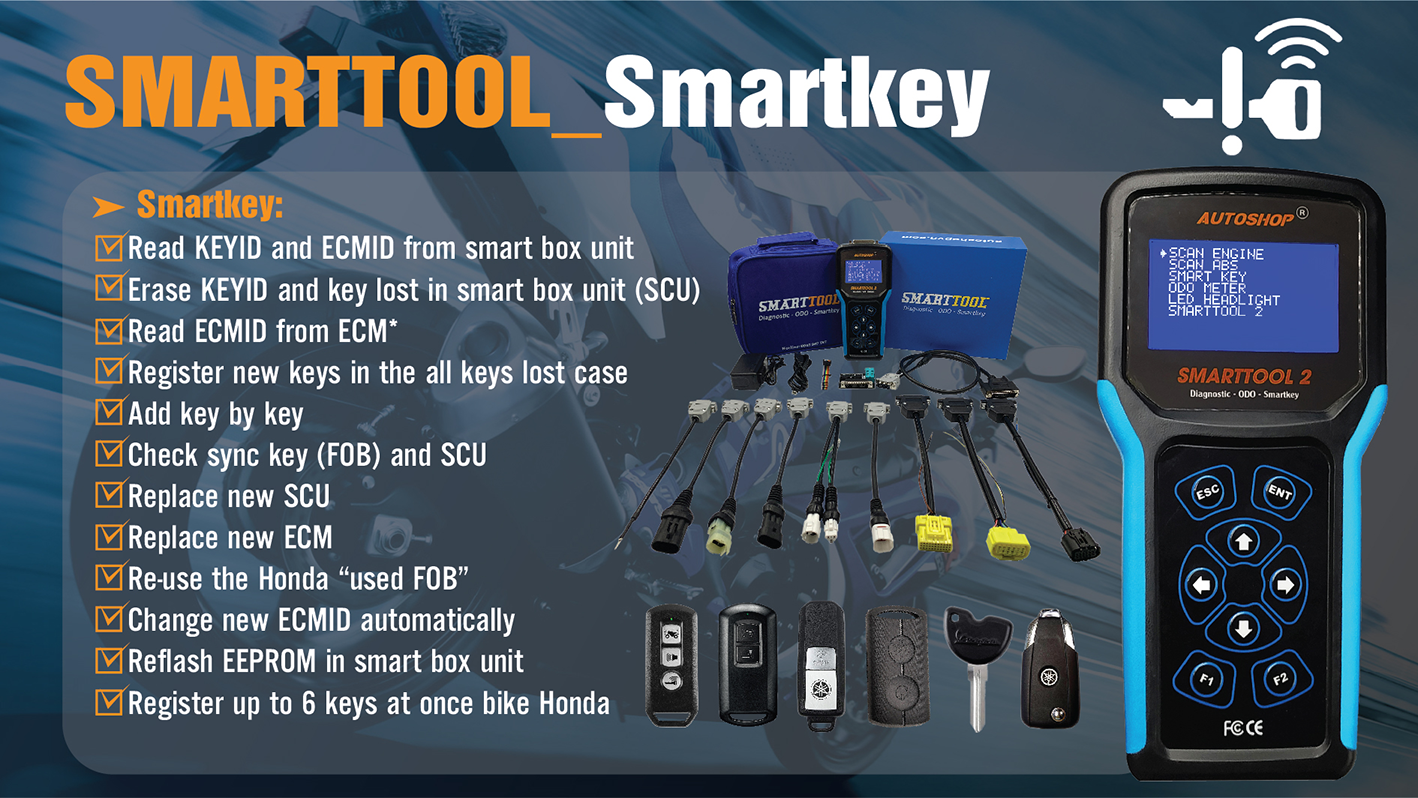 Dispositivo de diagnóstico y programación de llaves y ODO para motocicletas Autoshop SmartTool2 Pro