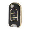 Nano Funda de cuero dorado de alta calidad para mando a distancia Honda Flip, 3 botones, Color negro, HD-B13J3