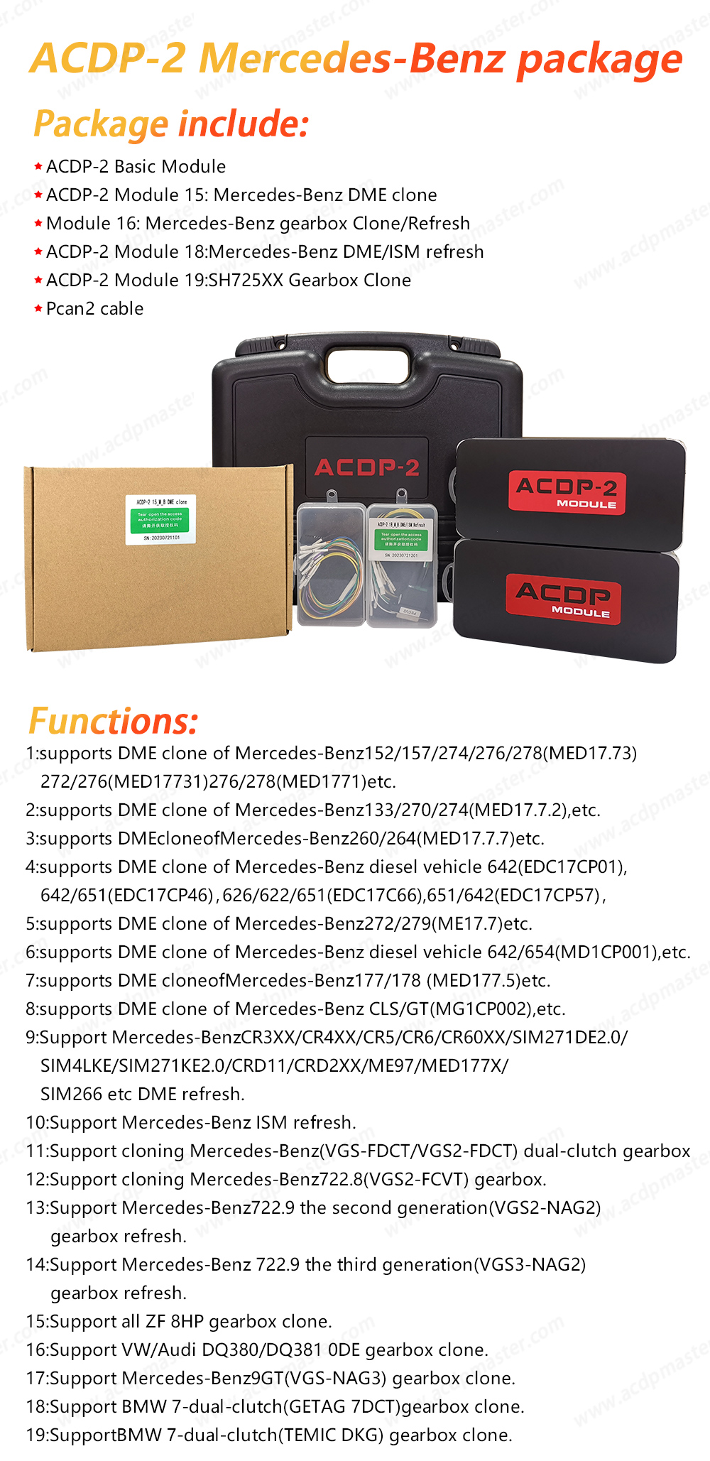 Paquete Yanhua ACDP 2 Mercedes Benz que incluye módulo 15/16/18/19 y cable Pcan2