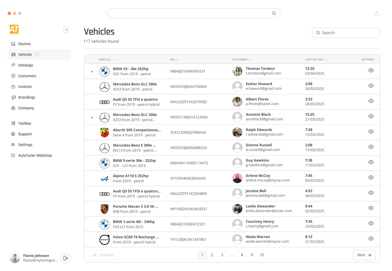 Accédez rapidement à tous les fichiers de véhicules associés aux outils AT One que vous gérez.