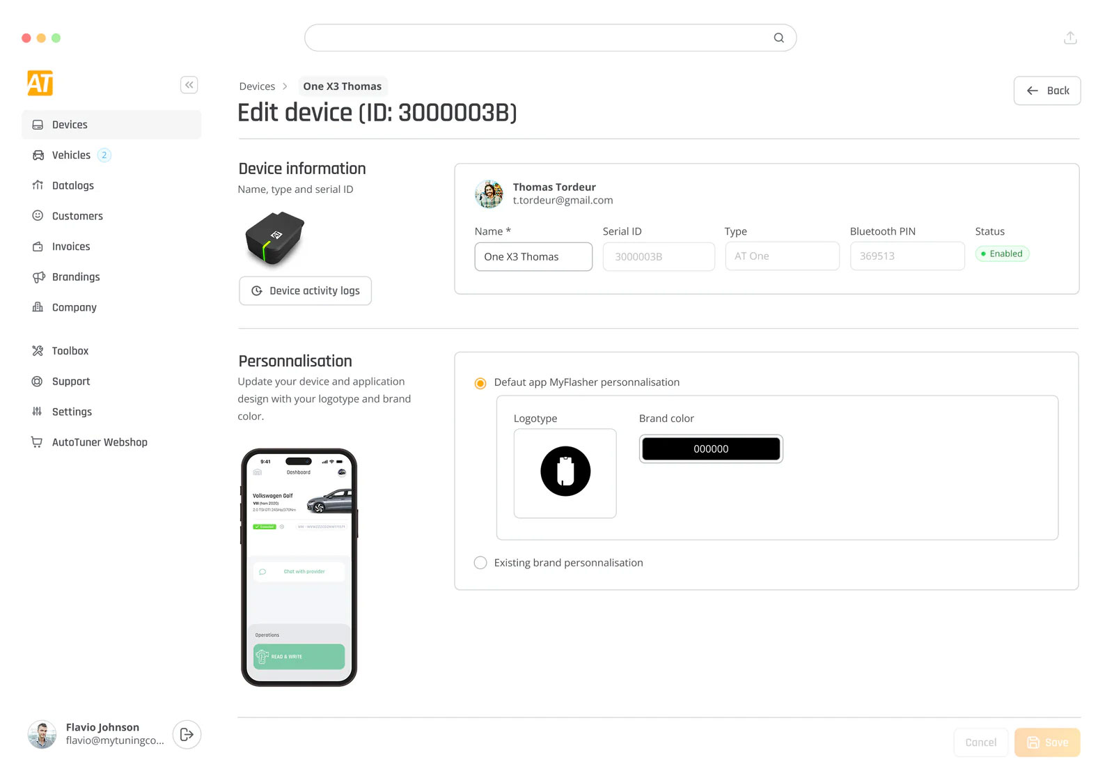 L'AT One est l'outil idéal pour maintenir le contact avec vos clients et leur permettre de bénéficier du même service qu'en atelier. Grâce à l'AT One et à son application mobile, votre client peut facilement consulter les données de son véhicule, vous envoyer le fichier de calibration moteur et vous contacter à tout moment pour toute question ou préoccupation.