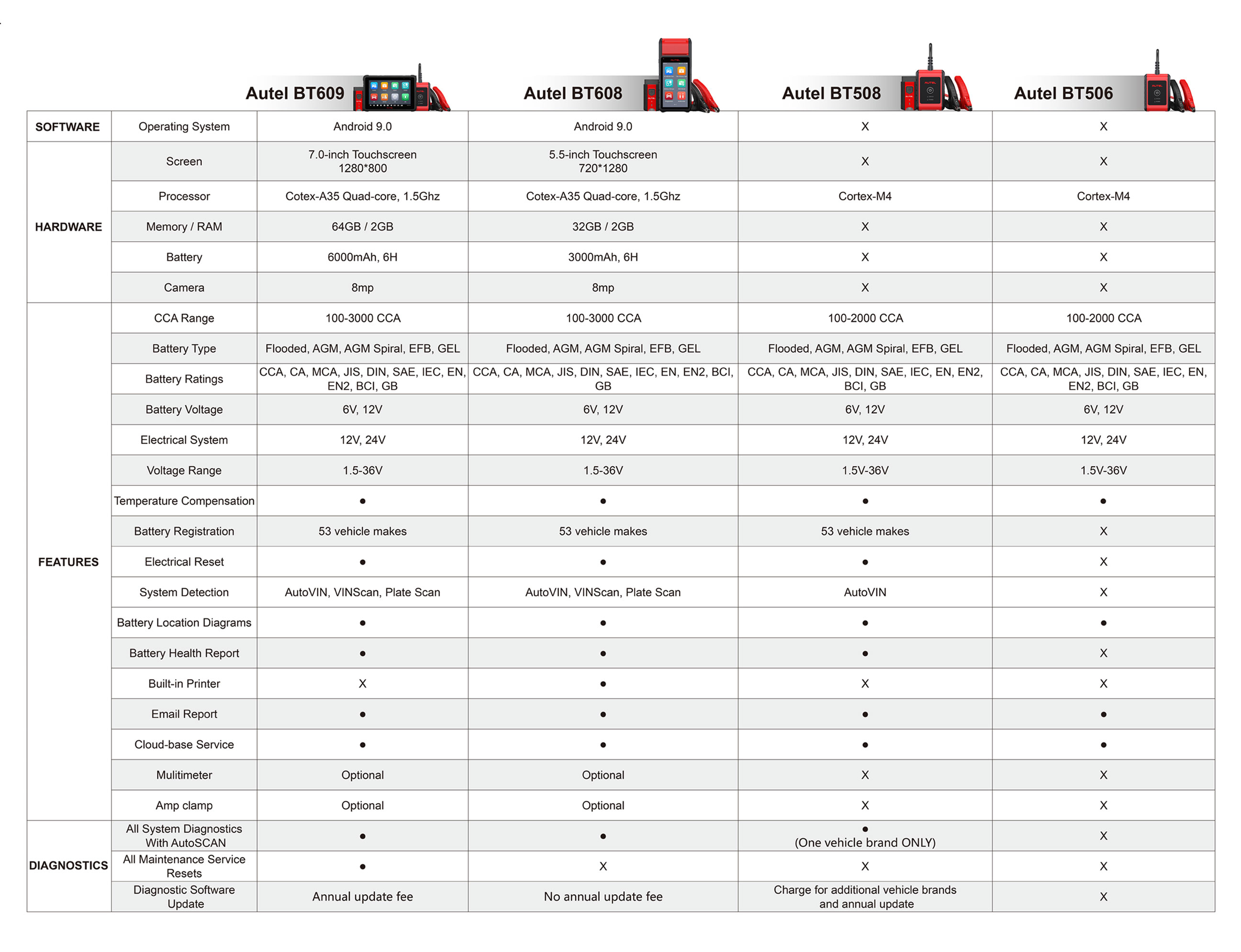 Il sistema di batteria e diagnostica wireless MaxiBAS BT609 applica la conduttanza adattiva, un metodo avanzato di analisi della batteria che produce un esame più accurato della capacità di avviamento a freddo e della capacità di riserva della batteria, fondamentale per determinare la reale salute della batteria. Il tablet touchscreen Android da 7 pollici può visualizzare rapidamente lo stato di salute della batteria esistente, registrare una nuova batteria ed eseguire una diagnostica avanzata della batteria e del sistema elettrico. Le funzionalità del BT609 includono AutoVIN per identificare immediatamente le informazioni sul veicolo e sulla batteria e per visualizzare istruzioni grafiche per il posizionamento e il test della batteria. Dispone di menu di servizio. Leggere/cancellare i codici su tutti i sistemi del veicolo disponibili ed eseguire servizi di manutenzione comuni. Stampa o condividi report personalizzati tramite Wi-Fi.