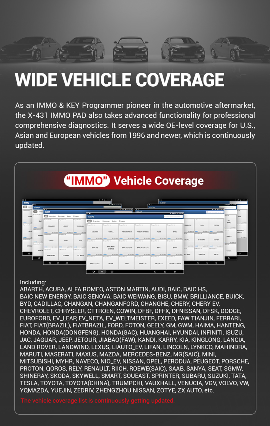 Supporta la sostituzione dei moduli antifurto di BMW, Mercedes-Benz, VW/Audi, Honda, Nissan, Hyundai, Kia, BYD, Changan, Wuling Baojun, GAC, SAIC Maxus, Great Wall Motor, Chery Car, Dongfeng Fengxing, JAC Passenger Car, ecc.