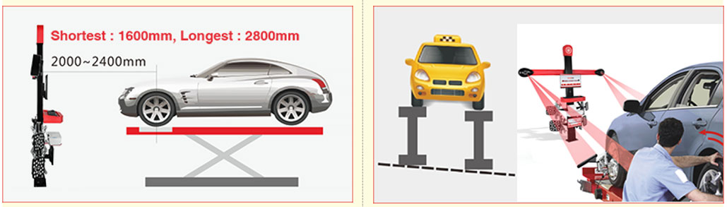 Questo tipo di macchina per l'allineamento delle ruote può funzionare anche con una lunga
