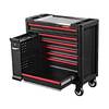 Il piano di lavoro GATmatic GEC901 è rivestito in acciaio inox e vassoio in ABS per una lunga durata. Sotto il piano di lavoro ci sono 4 cassetti piccoli, 2 cassetti profondi, 1 cassetto largo e 1 contenitore per esigenze di stoccaggio speciali. L'intera unità è dotata di 4 ruote girevoli che consentono all'armadietto portautensili di muoversi facilmente nel tuo spazio di lavoro.
