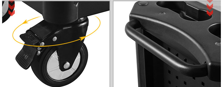 ruote per evitare che il baule si muova mentre lavori. Le rotelle girevoli rendono il carrello portautensili facilmente