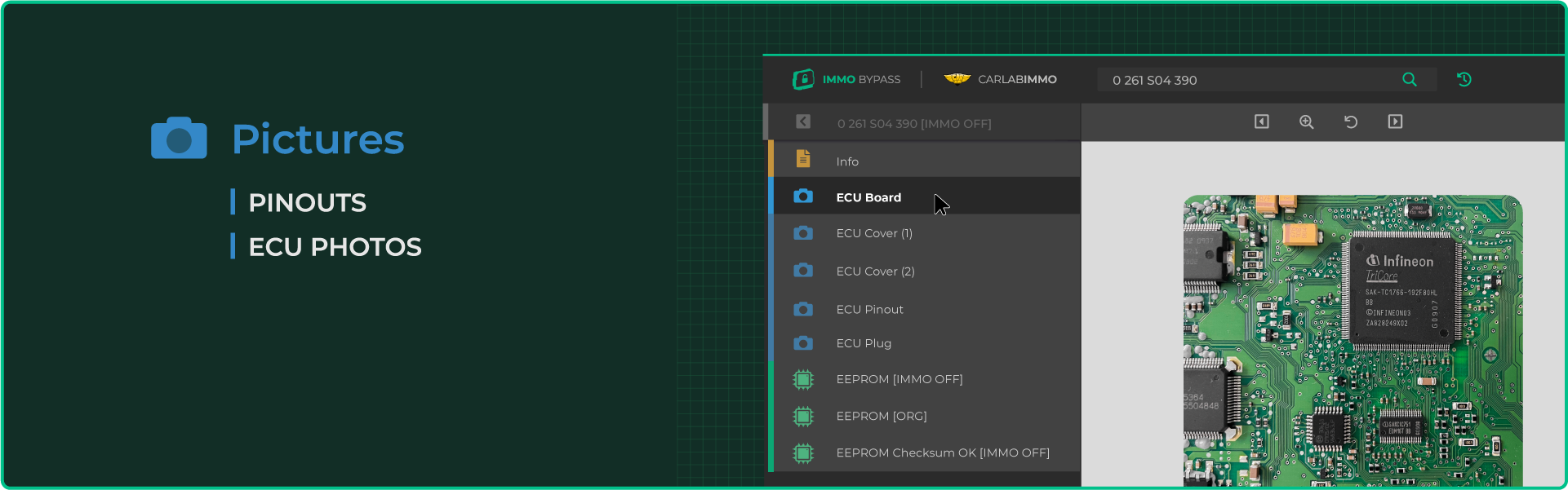 Immagini dettagliate e schemi elettrici di ogni ECU costituiscono una grande porzione del nostro database.