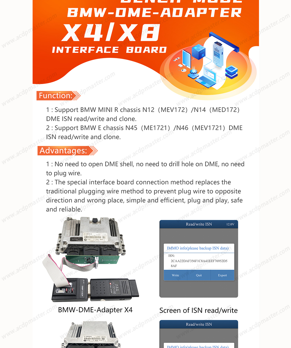 Conjunto de placa de interface Yanhua ACDP BENCH modo BMW-DME-ADAPTER X4/X8