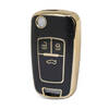 Nano capa de couro dourado de alta qualidade para Chevrolet Flip Remote Key 3 botões cor preta CRL-A13J3