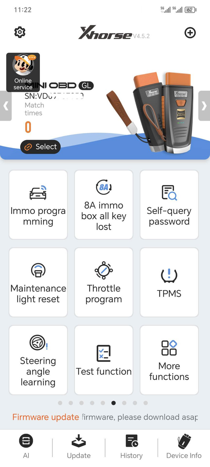 Reinicialização da luz de manutenção, programa do acelerador, TPMS, etc.