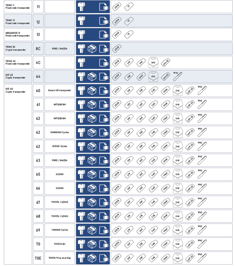 - Chaves transponder Toyota/Lexus ID67, ID68, ID70, ID70E.