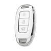 Нано Высококачественный Чехол Для Дистанционного Ключа Hyundai 3 Кнопки Белый Цвет Серебряная Рамка HY-D11Y3