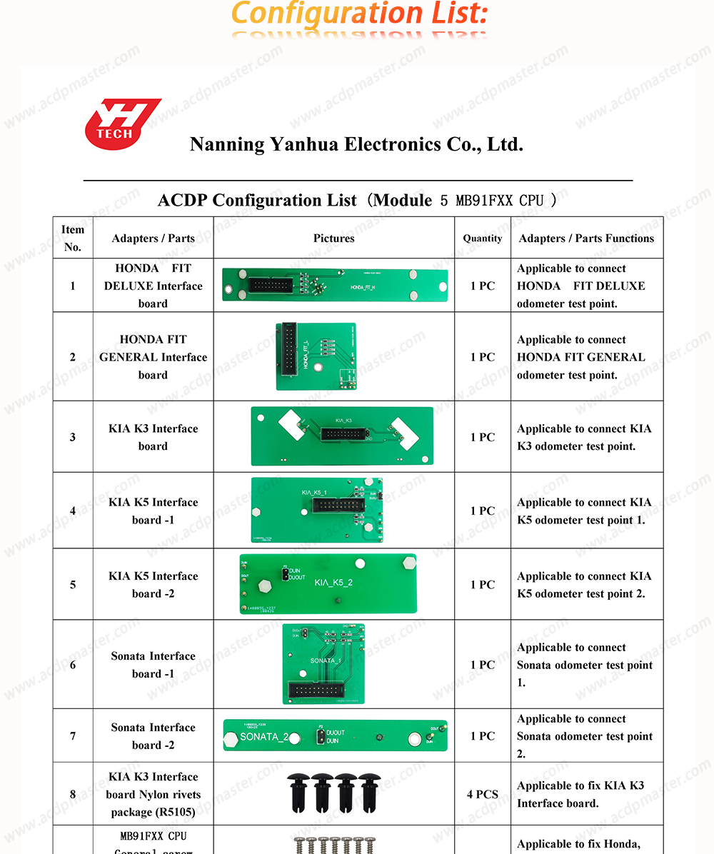 Yanhua Mini ACDP Module 5 Package List:
