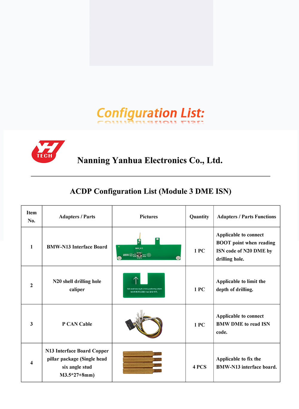 Yanhua ACDP Set Module 3 for Read/write N20/N55/N13 ISN code via OBD