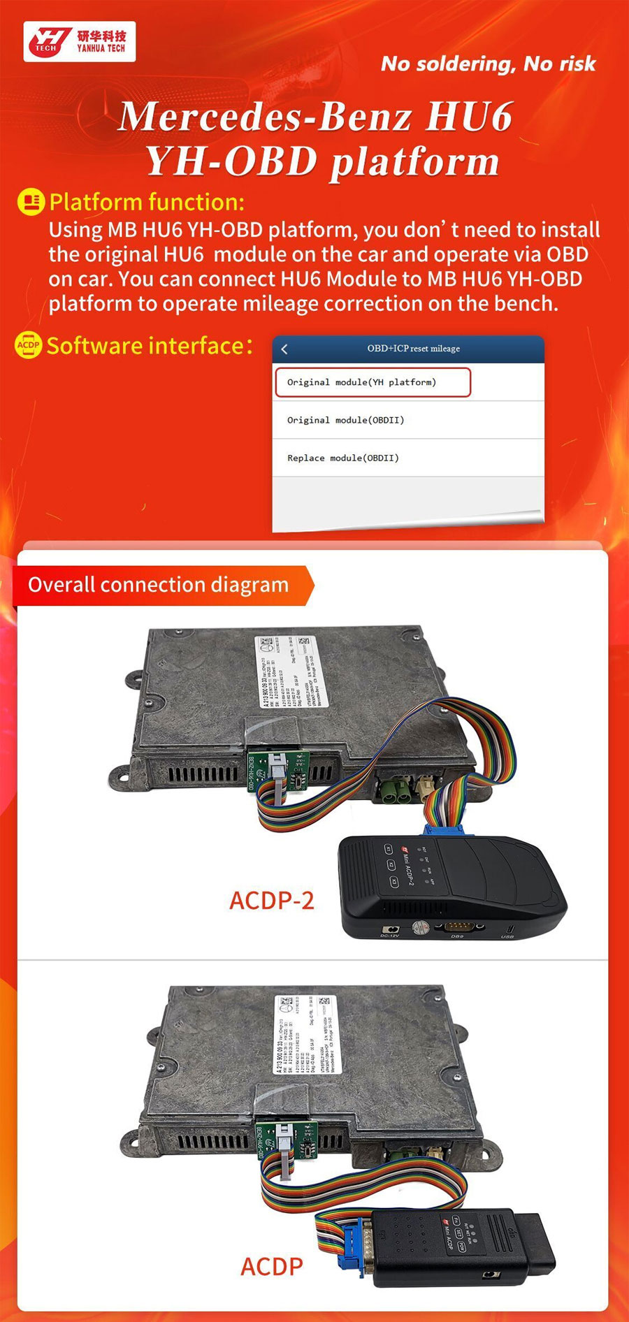 Using MB HU6 YH-OBD platform, when you do step3, you don't need to install the original HU6 module on the car and operate via OBD on car. You can connect HU6 Module to MB HU6 YH-OBD platform to operate mileage correction on the bench.