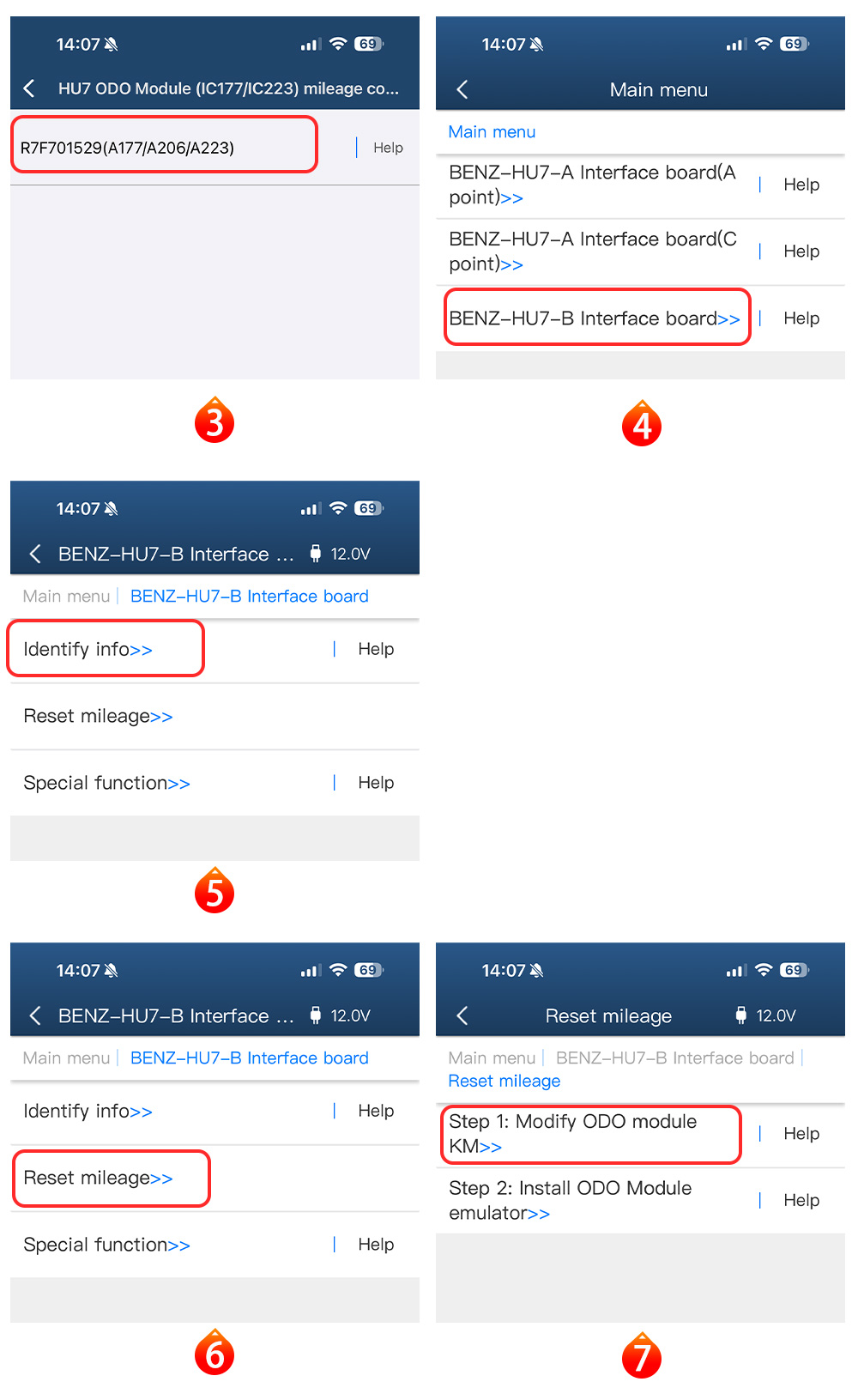 Support mileage correction for the MB HU7 instrument module (A 206/ A 223/A 177) with chip model R7F7015923/ R7F7015924.